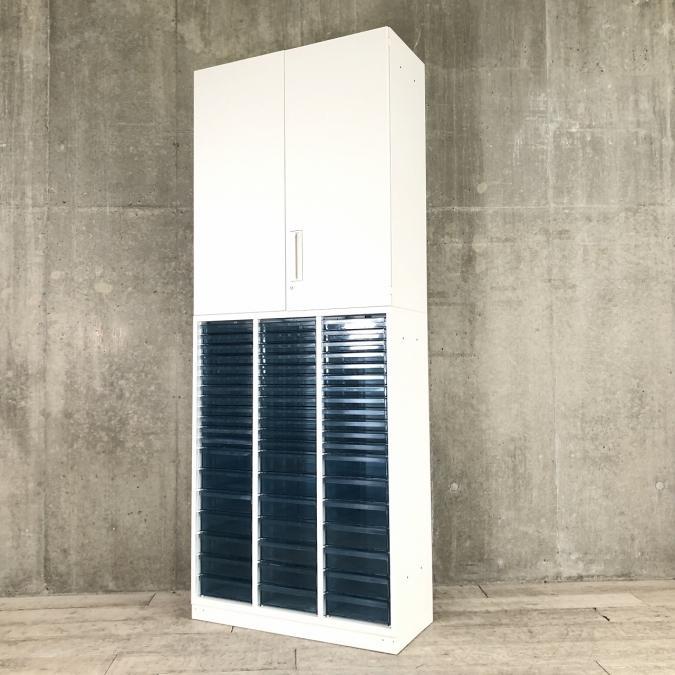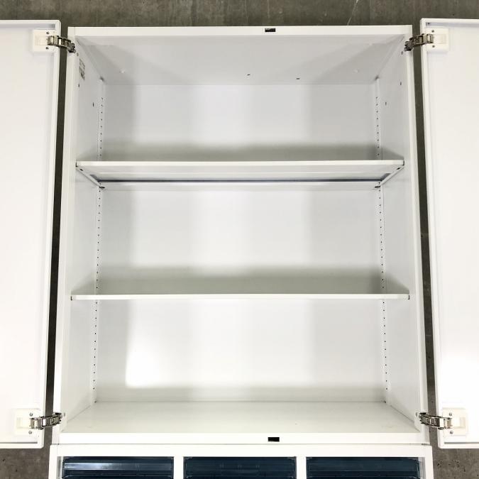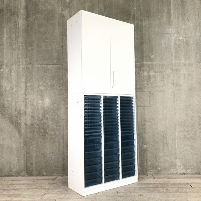 【両開き書庫とクリスタルトレイキャビネットの上下書庫セットの入荷です】 ■コクヨ/エディア/ホワイト 両開き+クリスタルトレー 深型3列11段 計33段
