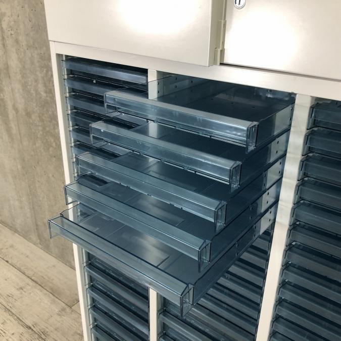 コクヨ製の書庫セット(上段:両開き 下段:クリスタルトレイ)が入荷致しました。