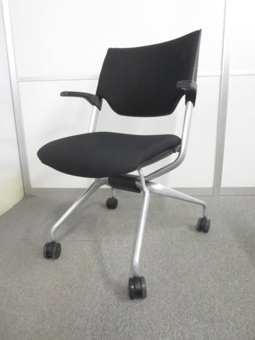 【在庫入替セール品】会議室や急な研修などにおすすめ!【上質なデザイン!】■イトーキ(ITOKI)レクシブシリーズ ネスティングチェア ブラック 肘付き- 池袋店