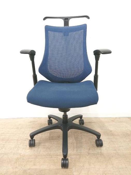 【最先端のデザインに快適な座り心地!】■イトーキ製 エフチェア 可動肘付 ネイビーブルー ■三次元フォルムが腰にフィット!【在庫入替セール品(本在庫限定価格)】