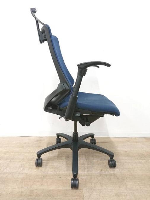 【1脚限定の為、クレジット決済優先!】【姿勢の変化にフレキシブルに対応!スタイリッシュで座り心地も抜群な高機能チェア!】■イトーキ(ITOKI)製 エフ(f)チェア 肘付き ハイバック 背面メッシュ ■可動肘 ■ネイビーブルー ×ブラックシェル