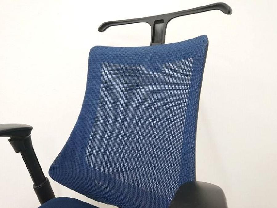 【姿勢の変化にフレキシブルに対応!スタイリッシュで座り心地も抜群な高機能チェア!】■イトーキ(ITOKI)製 エフ(f)チェア 肘付き ハイバック 背面メッシュ ■可動肘 ■ネイビーブルー ×ブラックシェル【2510】弊社使用欄【A01040263】