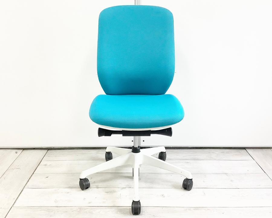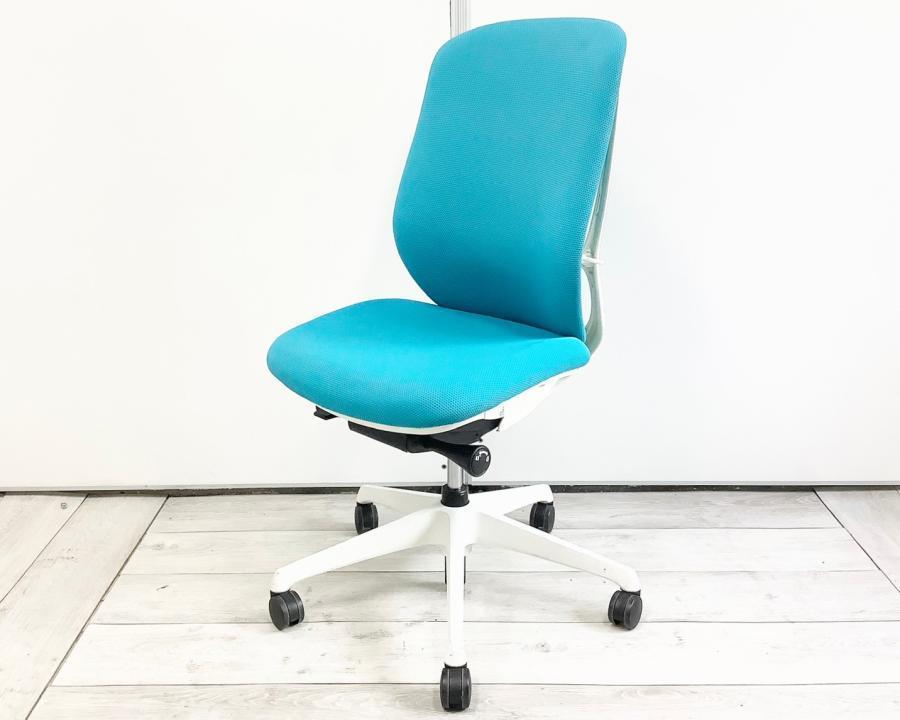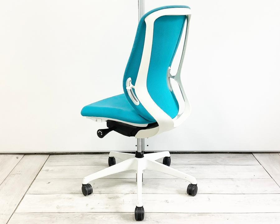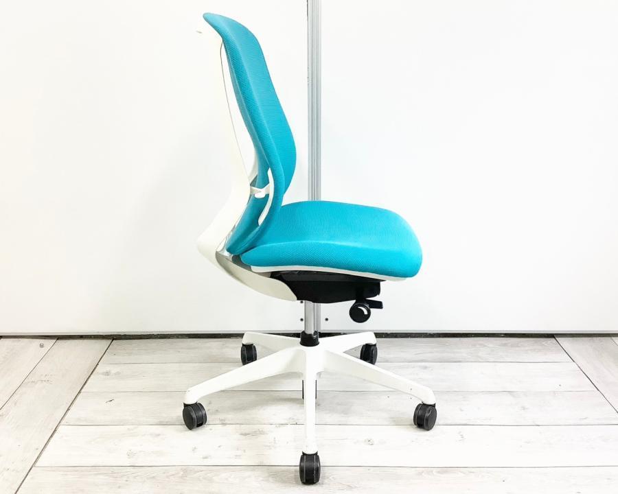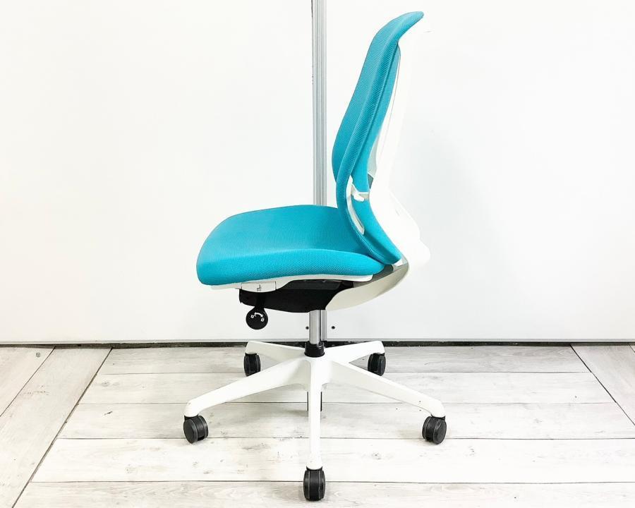 【背のカーブを変えられる! 新感覚のオフィスシーティング!】■オカムラ(okamura)製 シルフィーチェア ■肘無し ■ブルーグリーン×ブラックシェル ※上下昇降ガス圧弱めの商品となります。