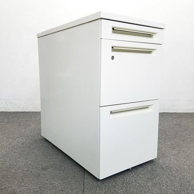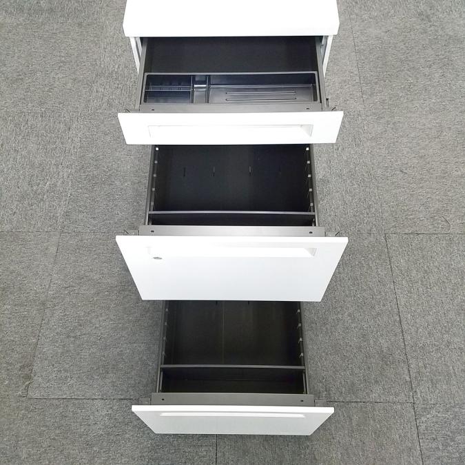 【収納と作業スペースを同時に確保!人気シリーズの脇机!】■オカムラ(okamura)製 アドバンス (ADVANCE) 3段脇机 高さ 720mm ■シリンダー錠 ■ホワイト 【弊社使用欄:A01041635】