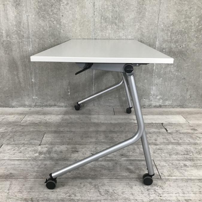 簡単に折りたたみ出来ます!幕板無のためお買い得!コンパクトな天板跳ね上げ式テーブル!W1200タイプ【J3】 ■オカムラ/ネスティア/サイドスタックテーブル/グレー- 立川・八王子店
