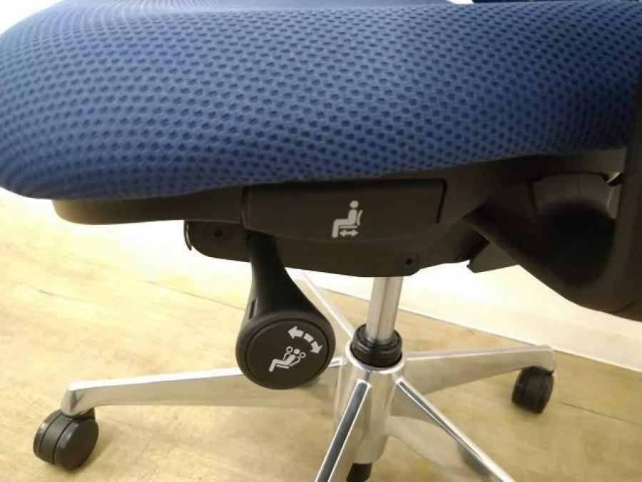 - 座面右下のダイヤル操作で、リクライニングの強弱調整が行えます。これまでのダイヤル式よりも、少ない回転数で、最弱?最強の調整が可能です。