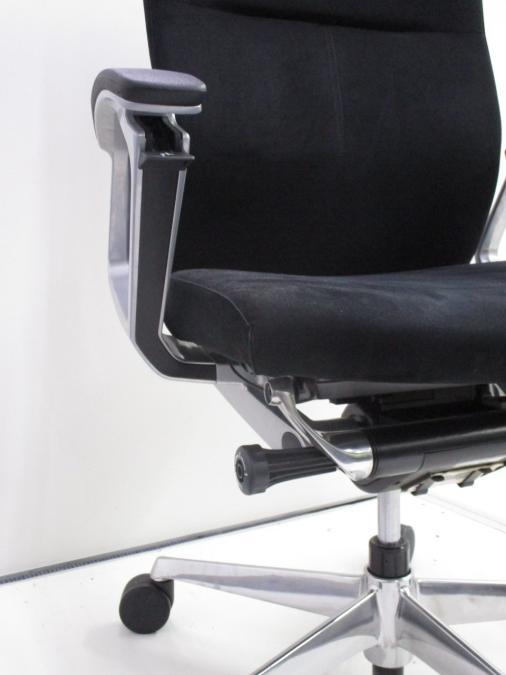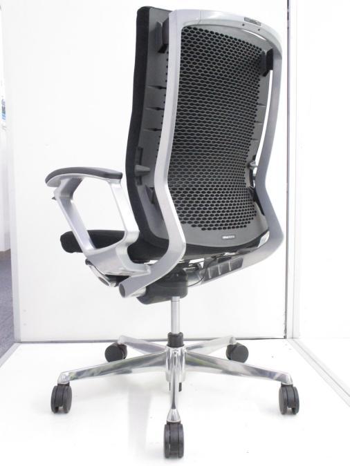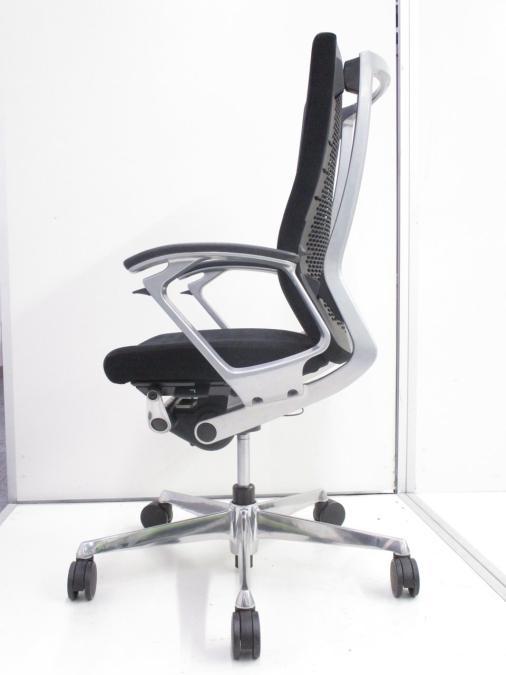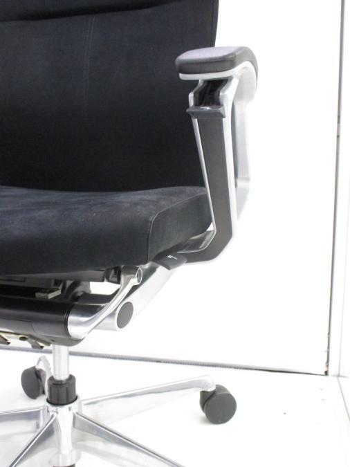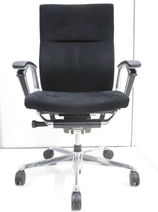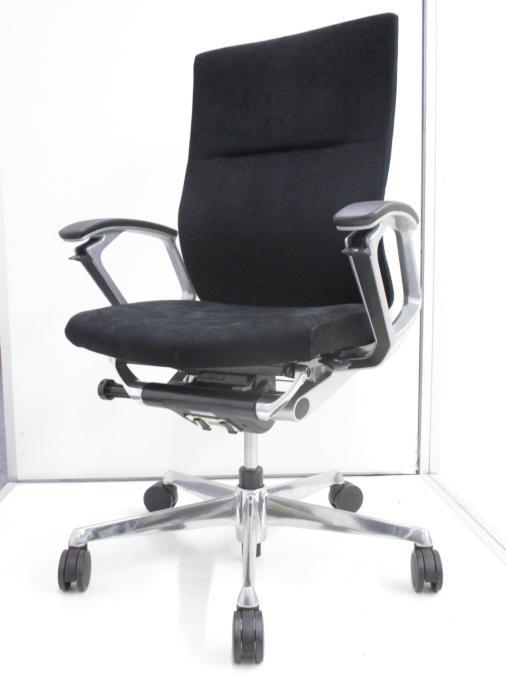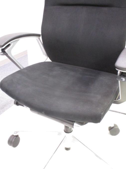 ※ひじ掛け部分に使用感ありのため、特価!【オカムラの最上級モデル!高級感と機能性を融合させたチェア!】■ハイバック 肘付き 背・座クロス張地(スエード調) 固定肘 ※サイド剥がれ有り ランバーサポート付き ブラック/オカムラ/デューク