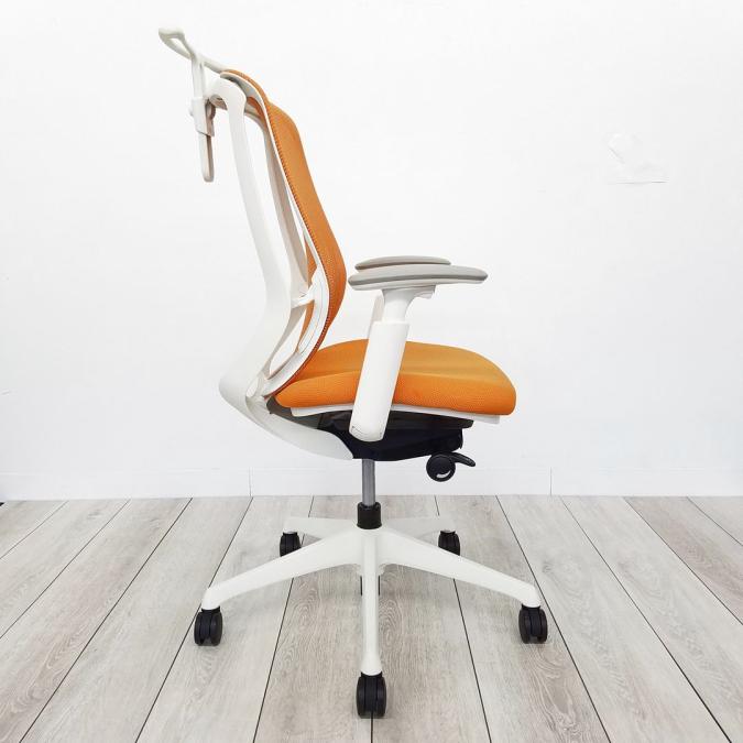 【在庫入替セール品!】【背のカーブを変えられる新感覚のオフィスシーティング!】■オカムラ シルフィーチェア 可動肘付 オレンジ ハンガー付 ホワイトフレーム ■新感覚のオフィスシーティング!【Okamrua Sylphy】