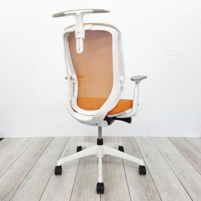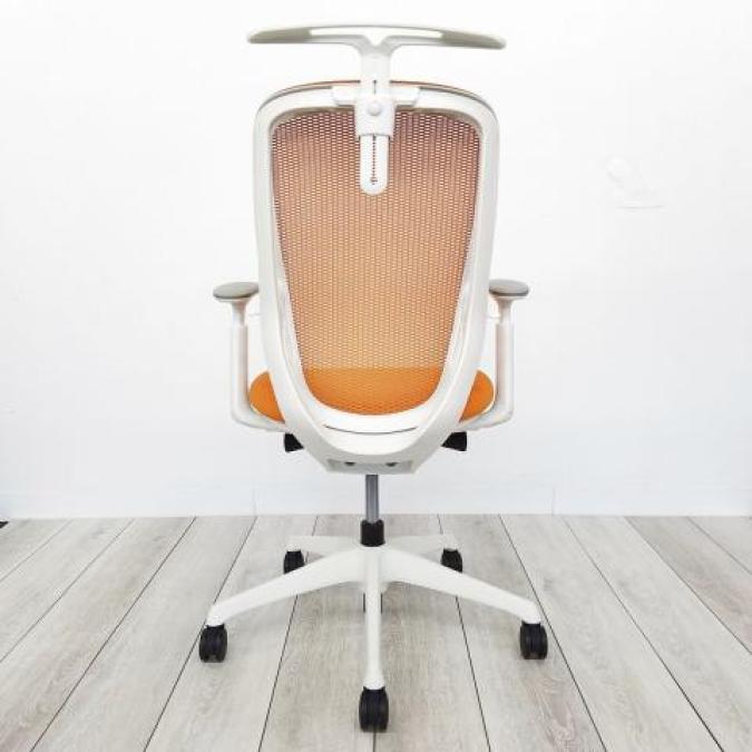 【在庫入替セール品!】【背のカーブを変えられる新感覚のオフィスシーティング!】■オカムラ シルフィーチェア 可動肘付 オレンジ ハンガー付 ホワイトフレーム ■新感覚のオフィスシーティング!【Okamrua Sylphy】