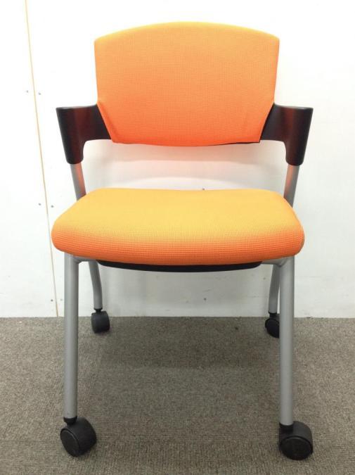 【シンプルスマートなスタッキングチェア!】■コクヨ(KOKUYO) プロッティ(Protty)チェア スタッキングチェア ミーティングチェア ■肘付き キャスター付き ■オレンジ【2505】弊社使用欄【A01018053】