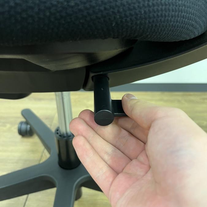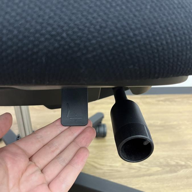 (ファブリック) - レバーを上下させることで、内蔵されたランバーサポートプレートの押し出し量を2段階(15㎜)切り替えることができます。