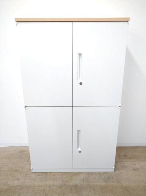 【定価約14万円】【コンパクトサイズのレアな書庫セット!!ナチュラルカラー天板付き上下両開き書庫セット】■イナバ TF 上下両開き書庫セット- 仙台店