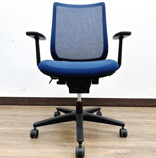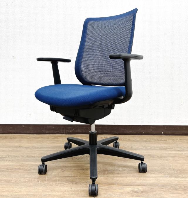 【4脚入荷】人気の高いミトラ (mitra)メッシュチェア!フィット感抜群です!落ち着いたルシアンブルー&ブラックフレーム仕様※固定肘掛け◆コクヨ製【RP】- 埼玉本店