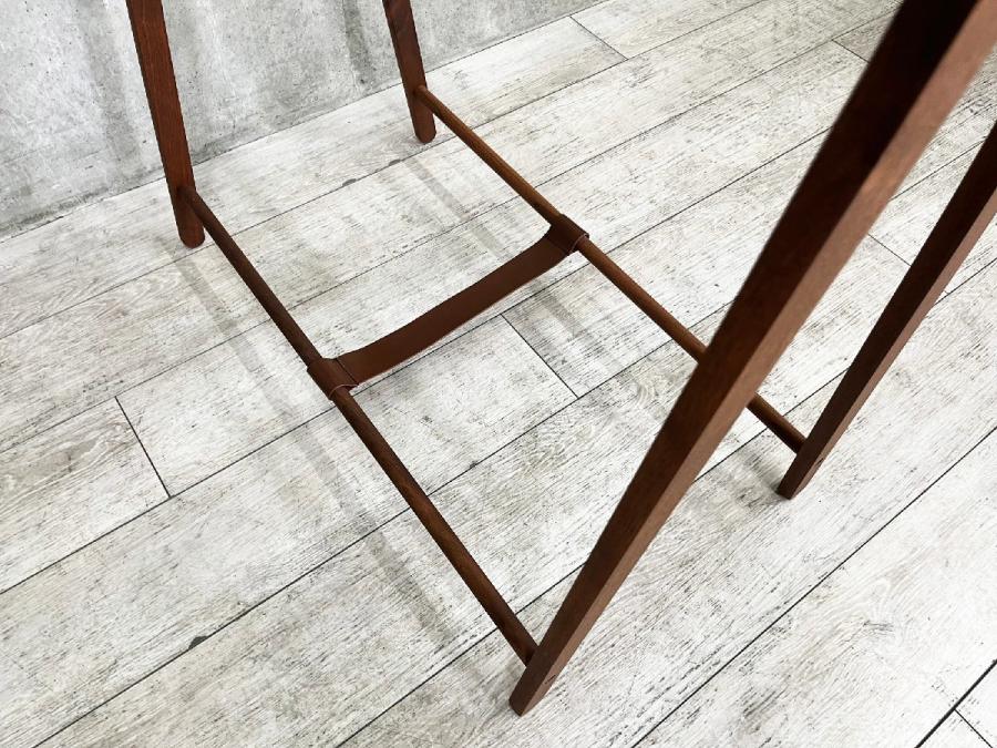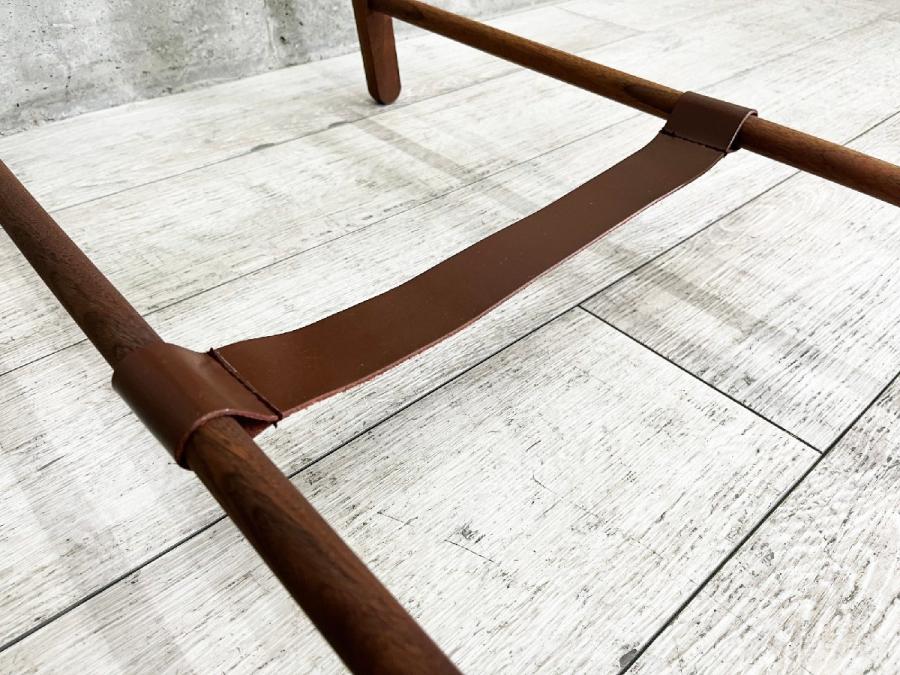 シンプルで飽きのこないデザインと素材感が美しいドレスラック。こちらはワイドタイプです。ハンガーで15着以上掛かる収納力と、折りたたんで移動できる身軽さが特徴です。脚は緩い曲面で面取りしていますので、見た目も手に触れるときにもやさしい感触になっています。<BR>脚先は、丸く面取りしているので畳のお部屋にもご使用いただけます。 バーに渡した牛革のベルトなど細部にもこだわりが感じられます。