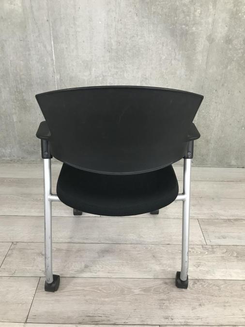 【シンプルスマートなスタッキングチェア!分厚いクッションで長時間でも快適な座り心地!】■スタッキングチェア 肘付ミーティングチェア ■固定肘 ■キャスター付 ■ブラック ■背面樹脂/コクヨ(KOKUYO/プロッティ