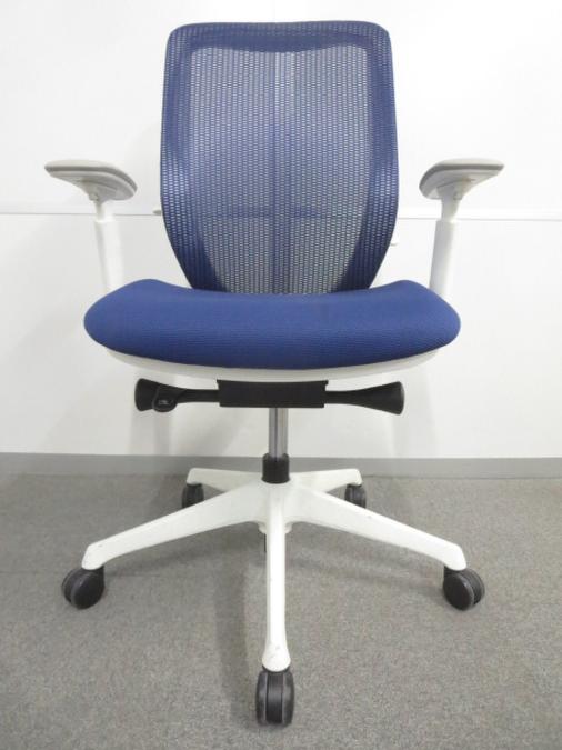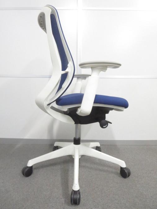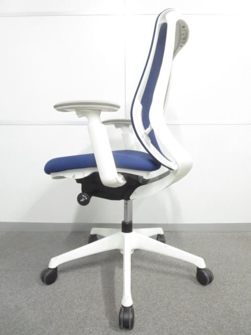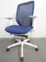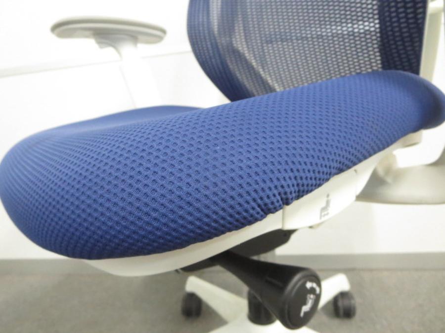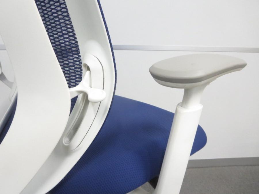 【1脚限定!!】【腰に優しいメッシュチェア!】■オカムラ製 シルフィーチェア 可動肘付 ミディアムブルー ホワイトフレーム ローバック- オフィスチェア店