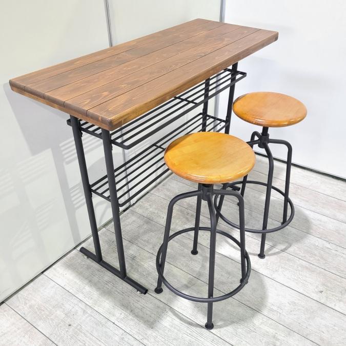 【2セット限定】カフェ風!カウンターテーブルセット!ブラック×木目でオシャレスペースを演出します!- 東大阪店