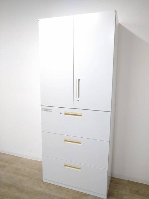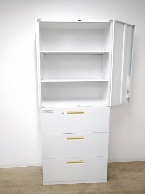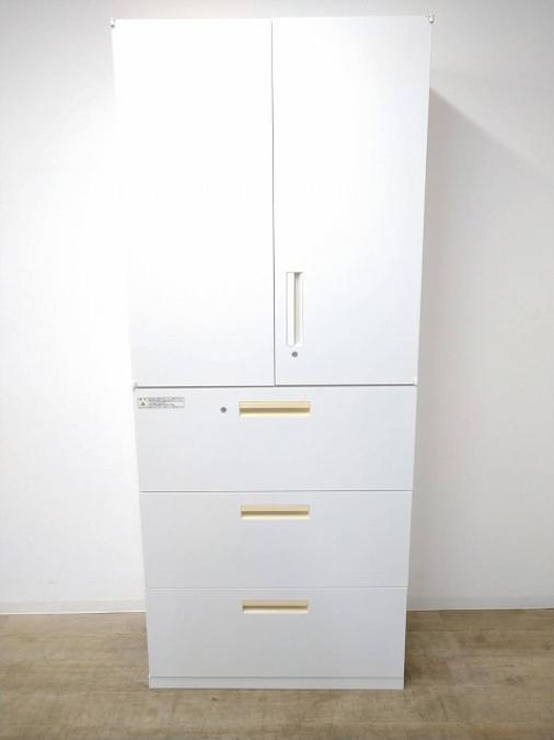 定番シリーズ!収納量抜群!観音開き+引き出しタイプのキャビネットセット! ■内田洋行/HS/ホワイト