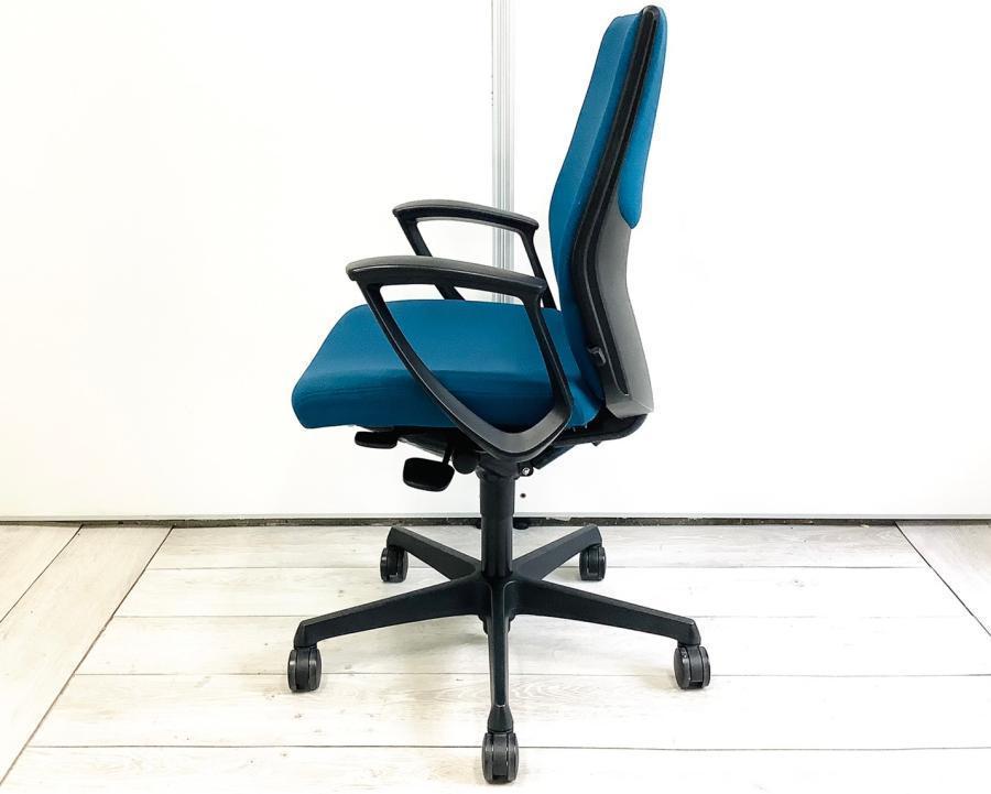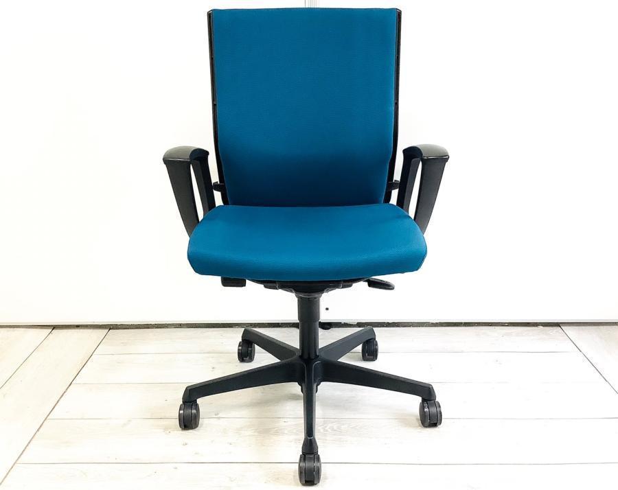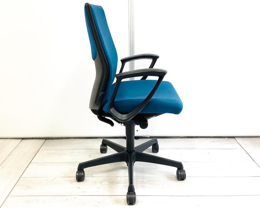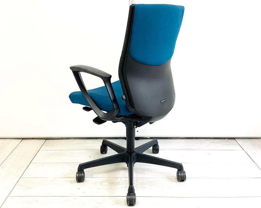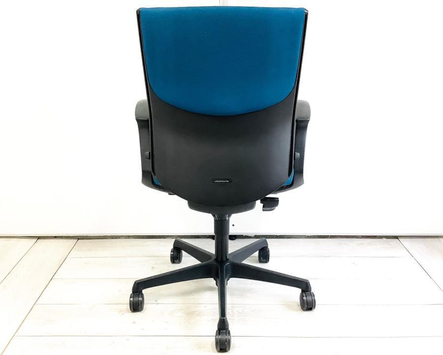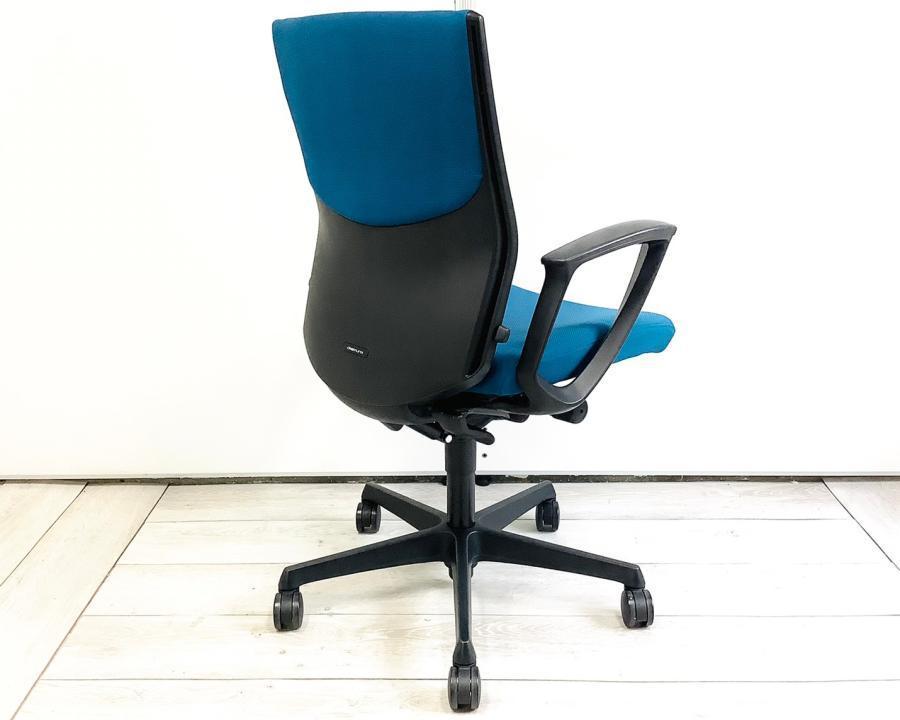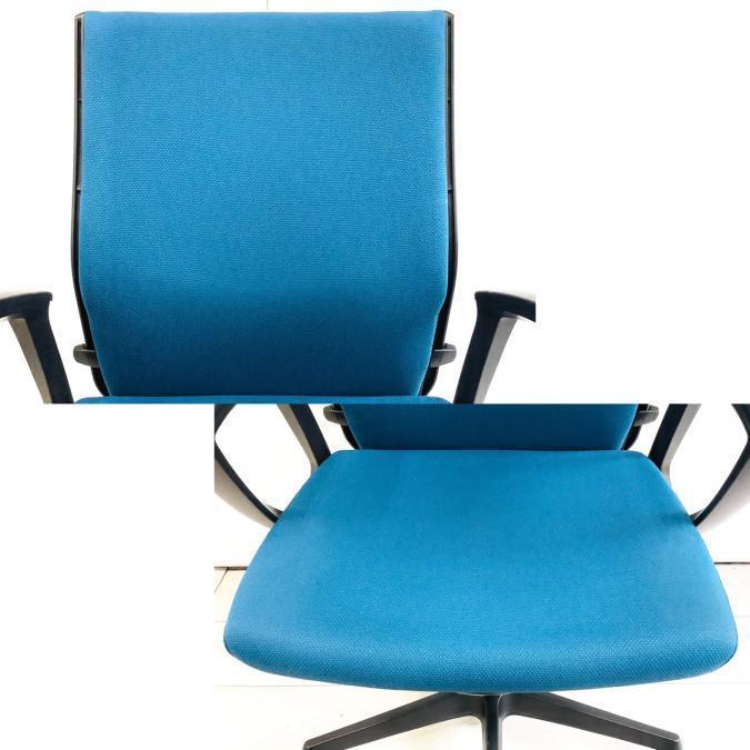 【スタンダードクラスで人気上位のワーキングチェア!人間工学に基づいた確かな座り心地!】■オカムラ(okamura)製 エスクードチェア(ESCUDO) 肘付き ハイバック 背面メッシュ ■サークル肘 ■ターコイズブルー ×ブラックシェル