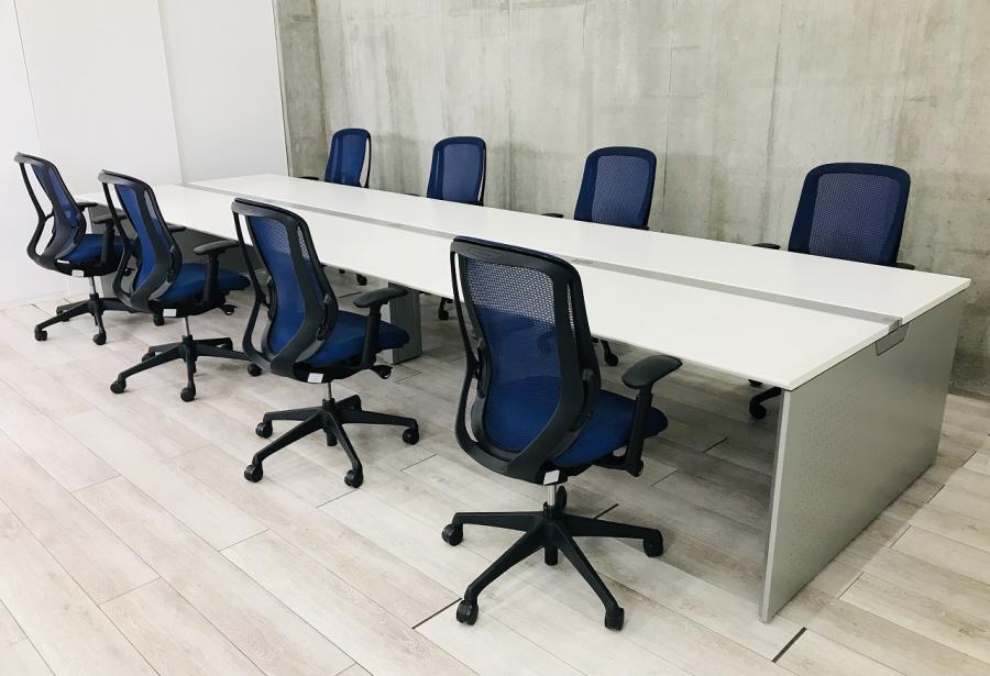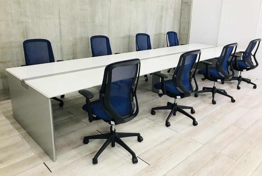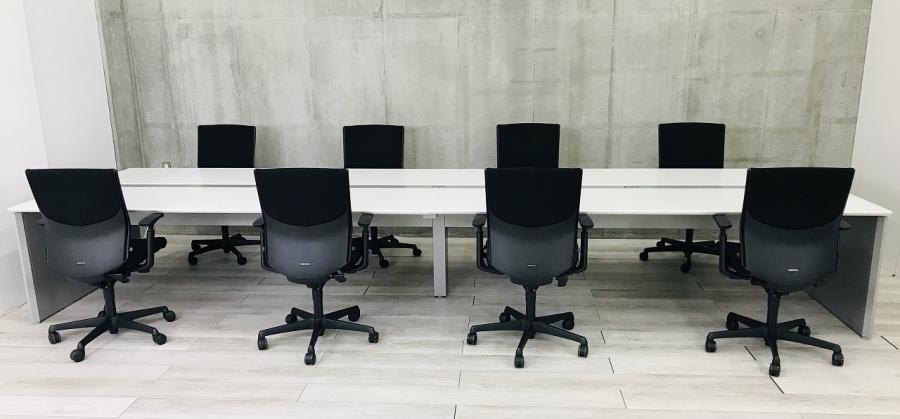 【見た目がおしゃれなフリーアドレスデスク】幅4800㎜ 奥行1400㎜ 高さ720㎜ オカムラ/プロユニットフリーウェイ/天板:ホワイト/脚:ホワイト 中古家具