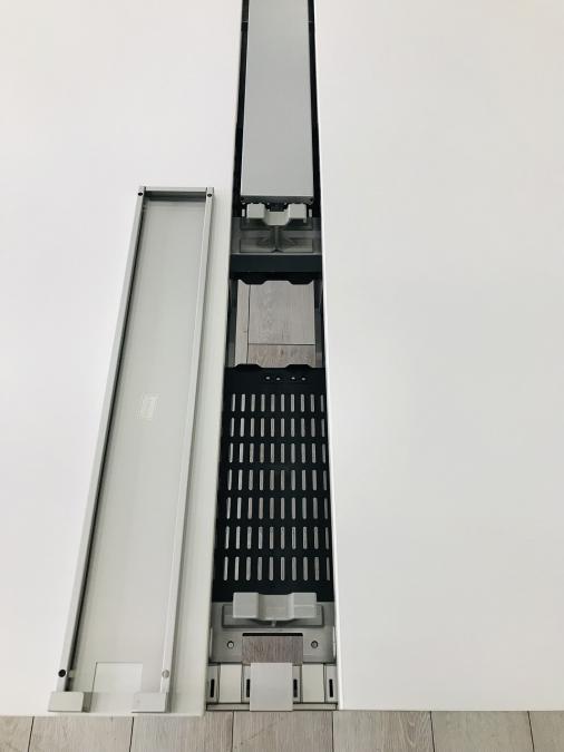 中間脚内部へ床からのケーブルを通せ、簡単にまとめる事ができます。