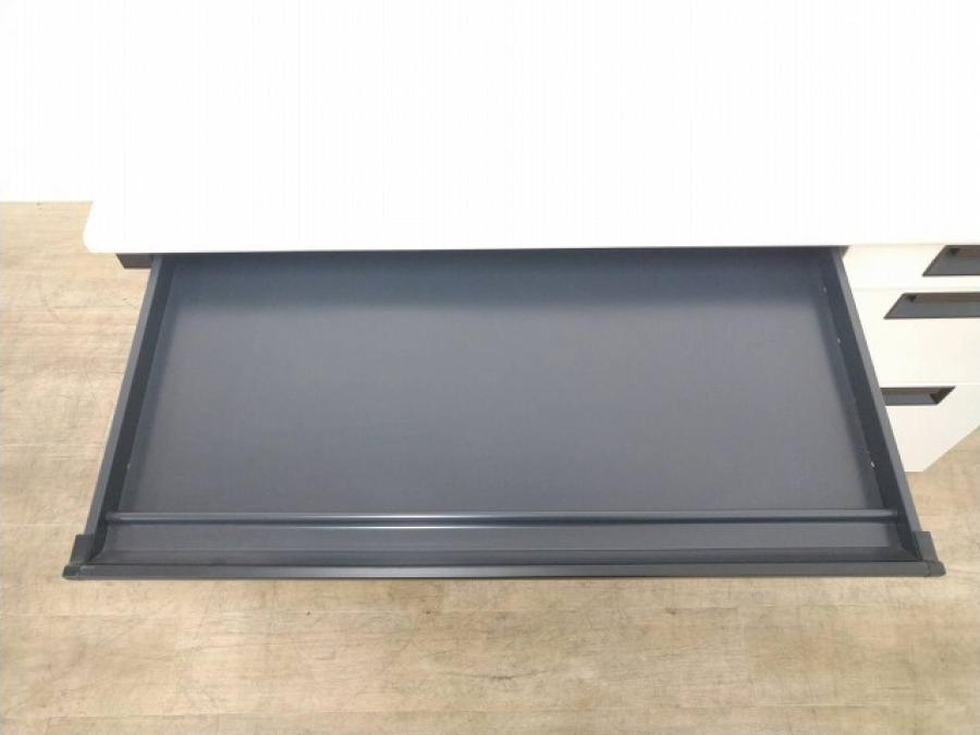 【定番サイズの幅1200㎜!オーソドックスな片袖デスクが入荷!】■プラス(PLUS)製 フラットライン 片袖机 引き出し付き 幅1200 ■ホワイト ※一部袖引き出しへこみあり 【弊社使用欄:A01040197】