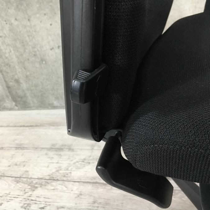 しかも、背もたれ両側のレバーを上下に動かすことによって、ランバーサポートの支点を上下に60mm動かすことができるので、体格に合わせて調整できます。