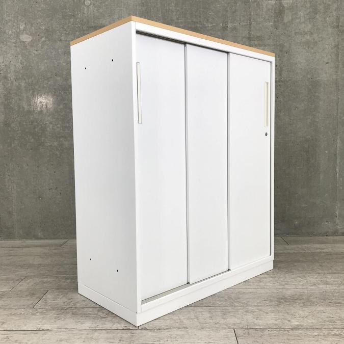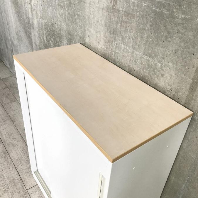 通路を邪魔することのない引き違いタイプの書庫となります!ホワイト仕様で開放感あるオフィスに!ナチュラルカラーの天板付き! ■内田洋行/HS/ホワイト- 立川・八王子店