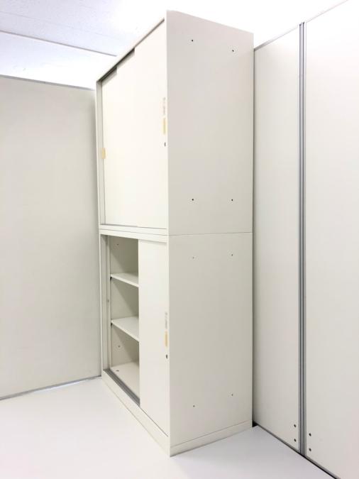 【省スペースに最適!!上下引き違いの人気キャビネット!】オカムラ レクトライン 引違い上下書庫セット キャビネット 【引き戸タイプのため扉開閉スペースの確保が不要!】【AD】
