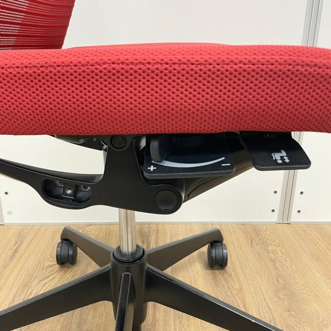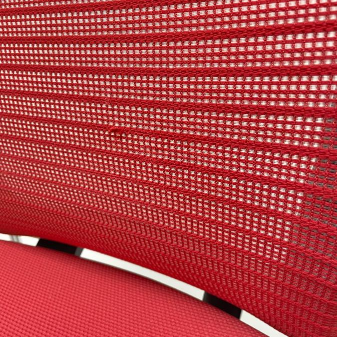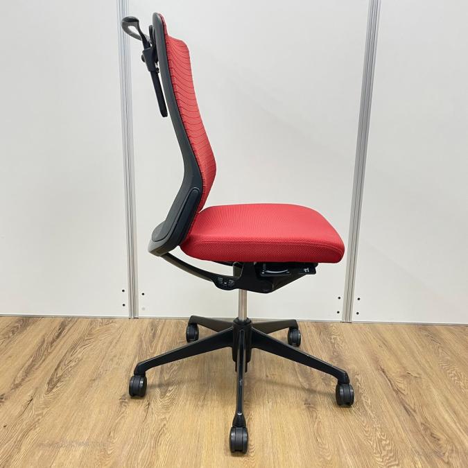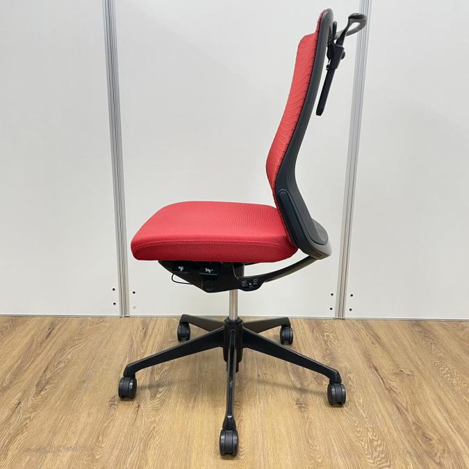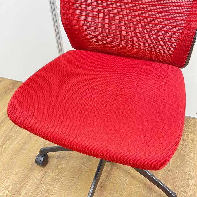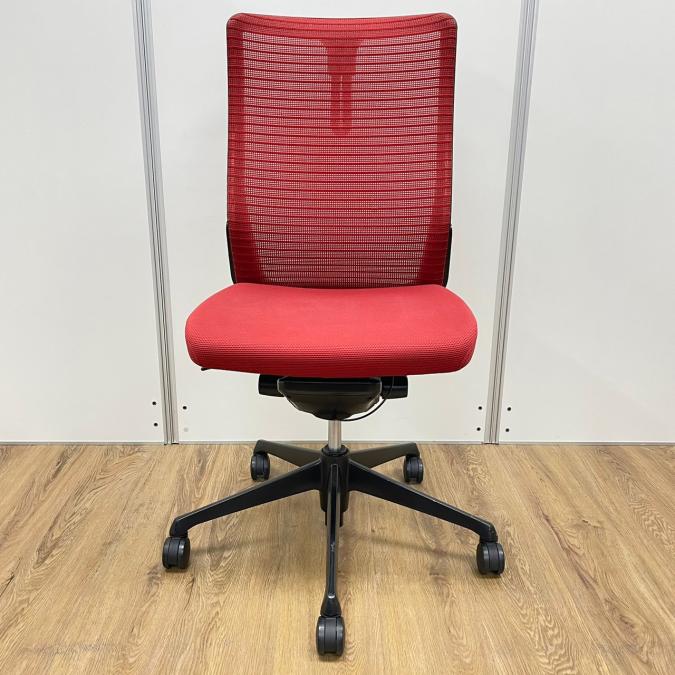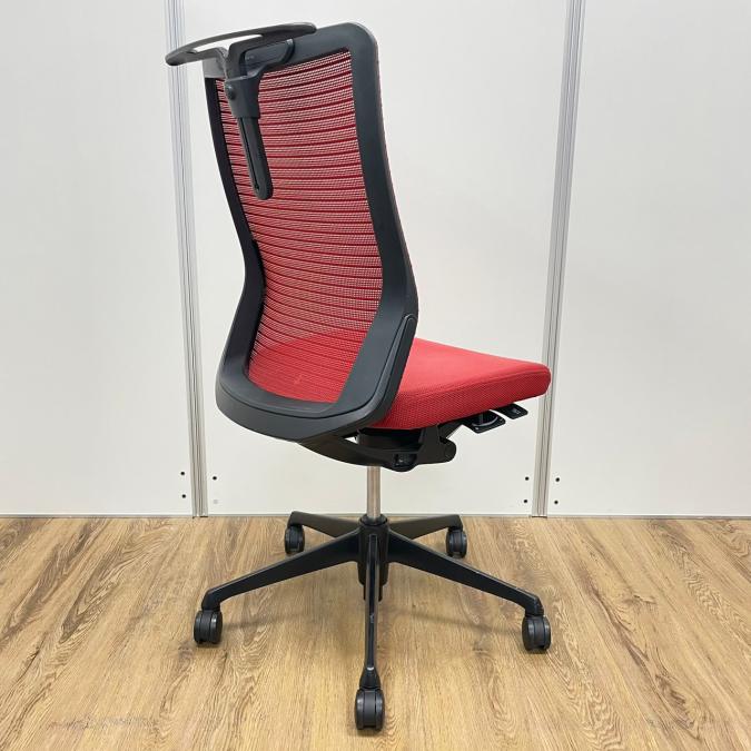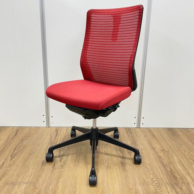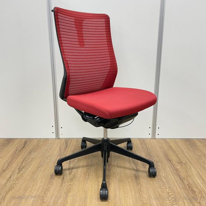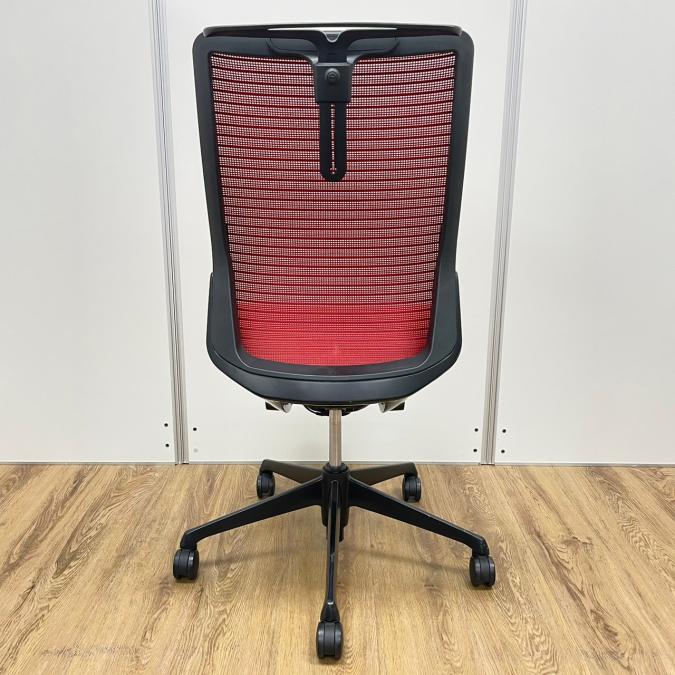 オカムラ製 コーラルシリーズ レッドカラー メッシュタイプで通気性バツグン コートハンガー付き 肘無しハイバックチェア!!※現物画像※サーキュラーバリューCO2削減量の算出について