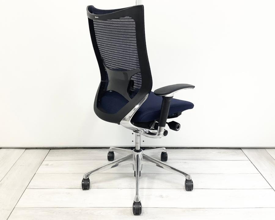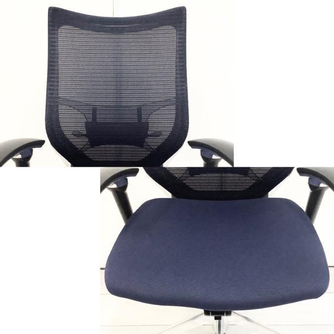【オフィスの執務室、会議室におすすめ!】■オカムラ(okamura)製 バロン(Baron)チェア 肘付き ハイバック 背面メッシュ ■可動肘 ■ダークブルー × ホワイトシェル【硬めの座面が大人気!国産メッシュチェアの代表格!】【状態良好品!】