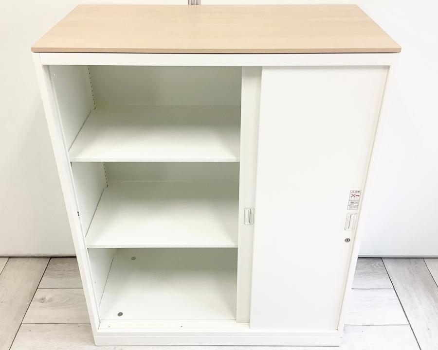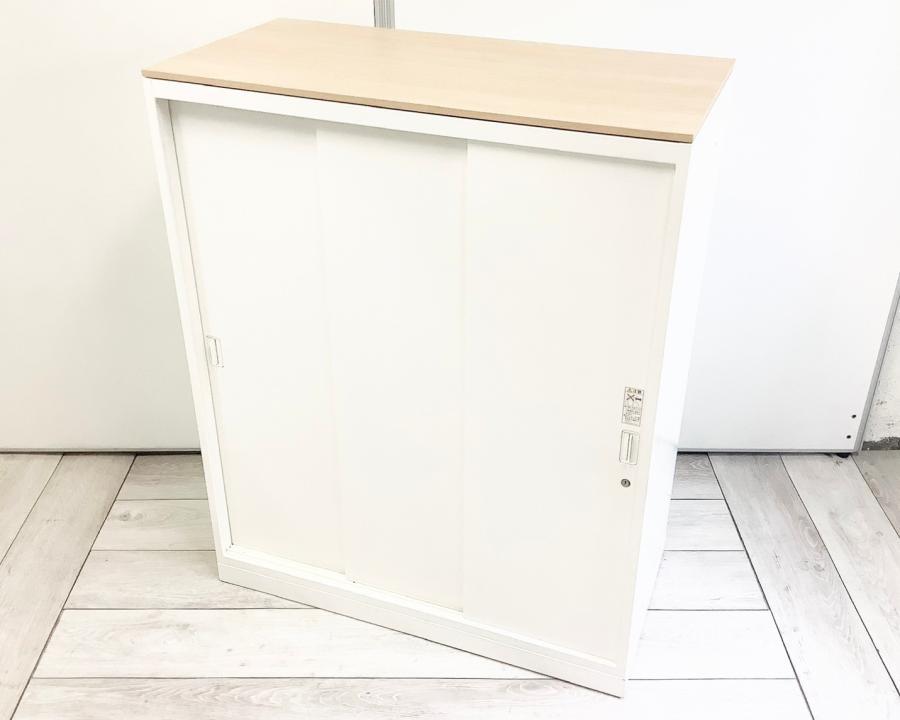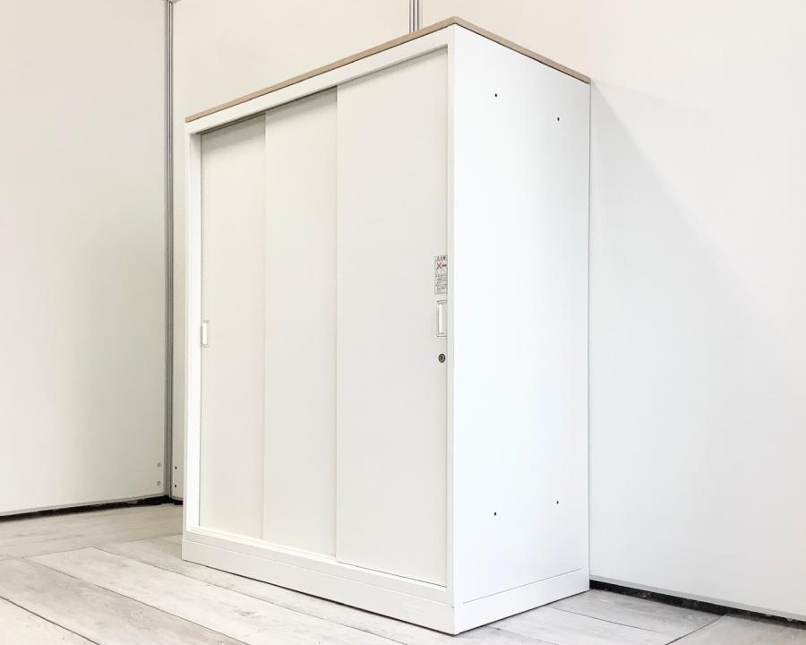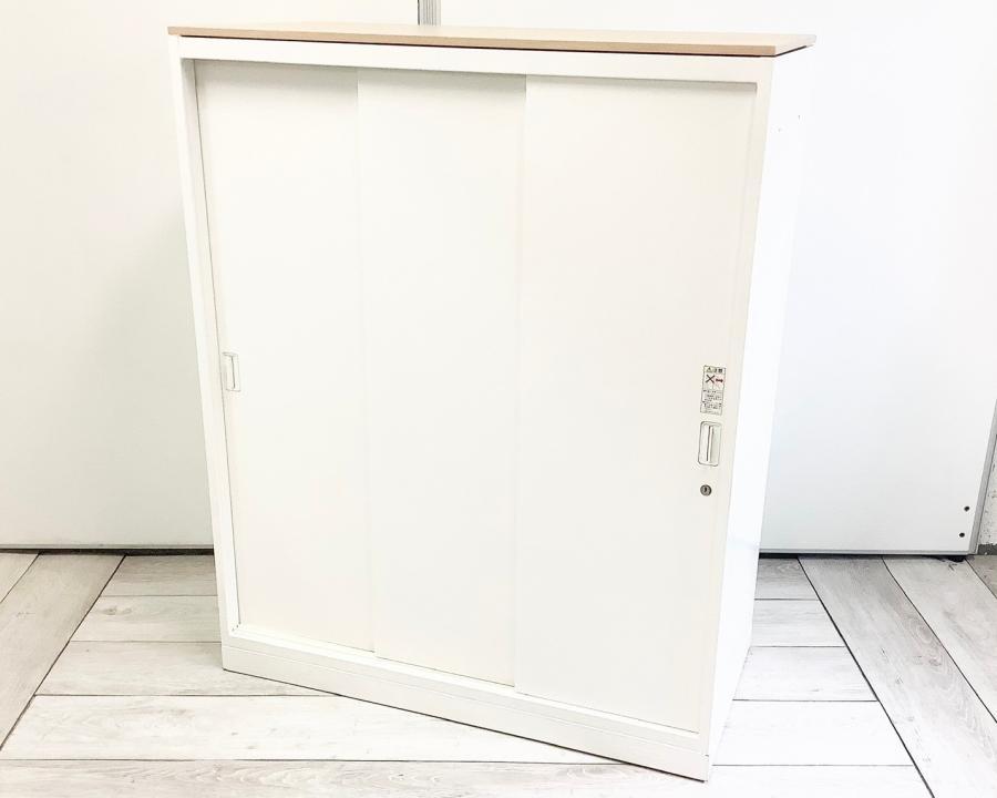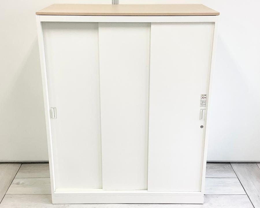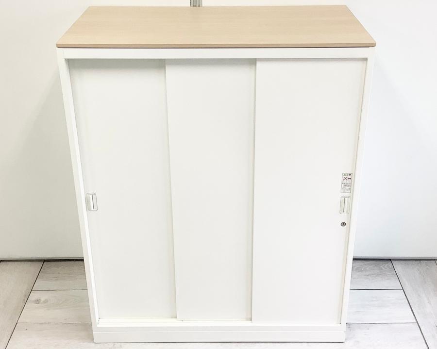 オカムラ製 人気レクトラインシリーズ ホワイト シリンダー W800xD450XH1050 3枚引戸 ※ベースなし 3枚引き違い書庫!!