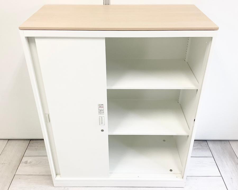 2枚引き戸書庫 オカムラ レクトライン 鍵付き シリンダー錠 ホワイト 天板無し スライド式の扉のため導線を邪魔しません