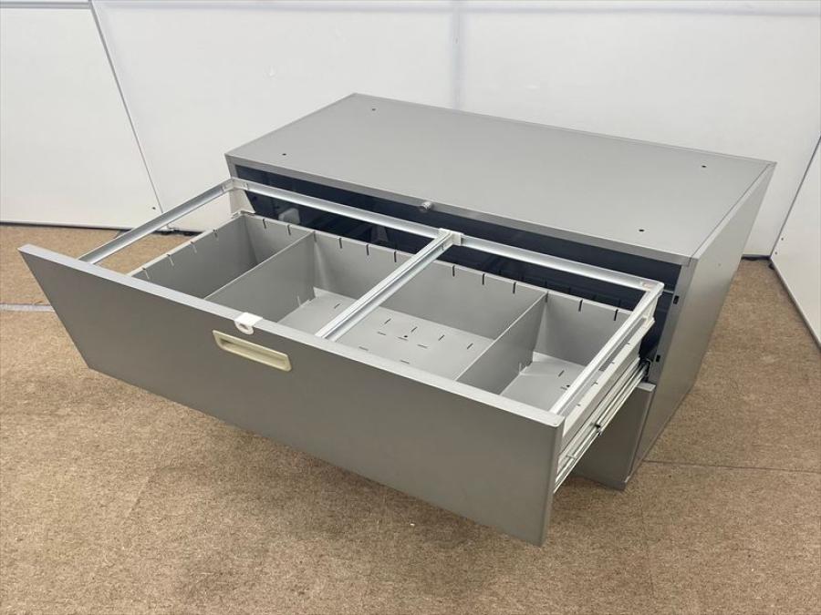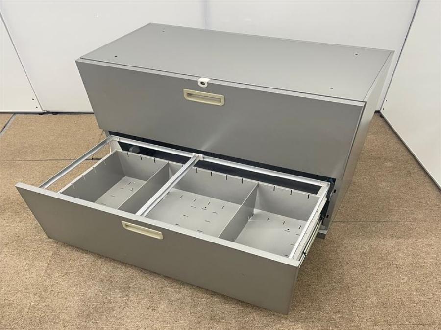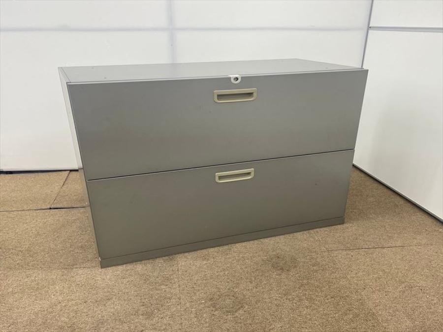 【希少】【鍵作成不可】スチールケース/2段ラテラル/シルバー- 在庫数