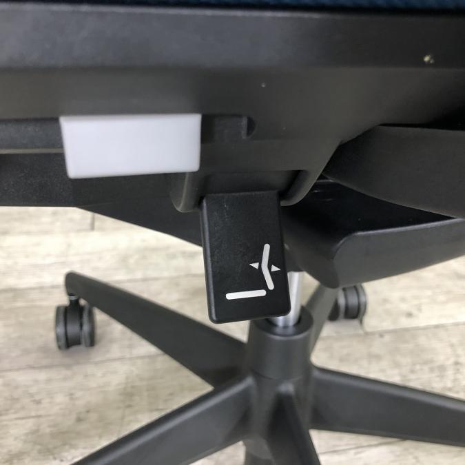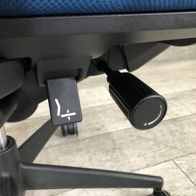 座面左前側のレバーを操作することで、前緑が20mm前傾した状態と通常位置の選択が可能。