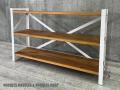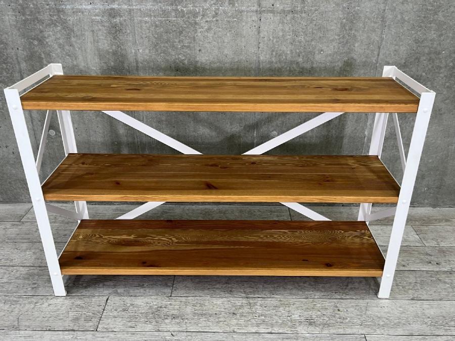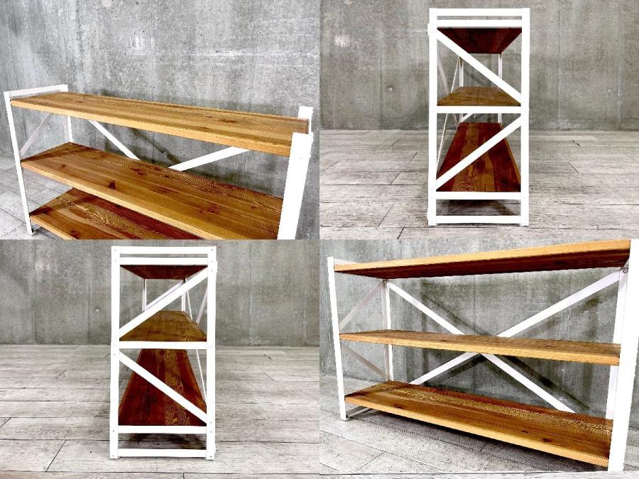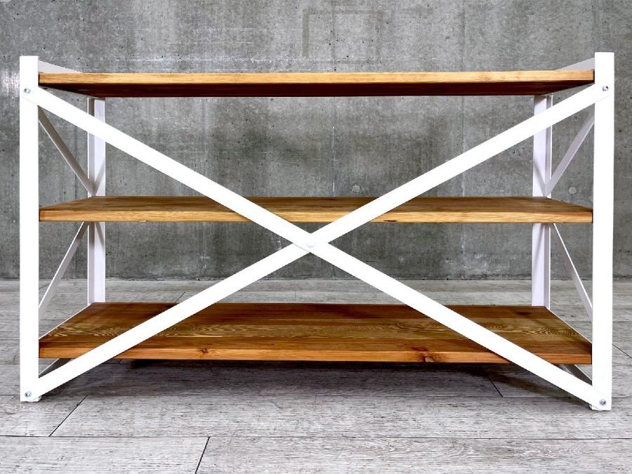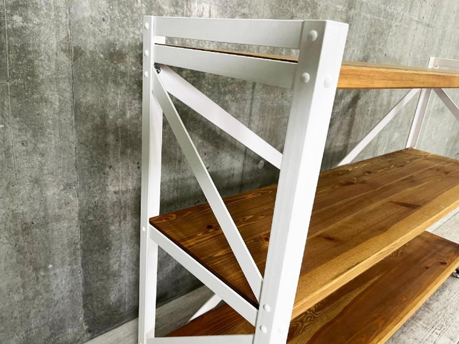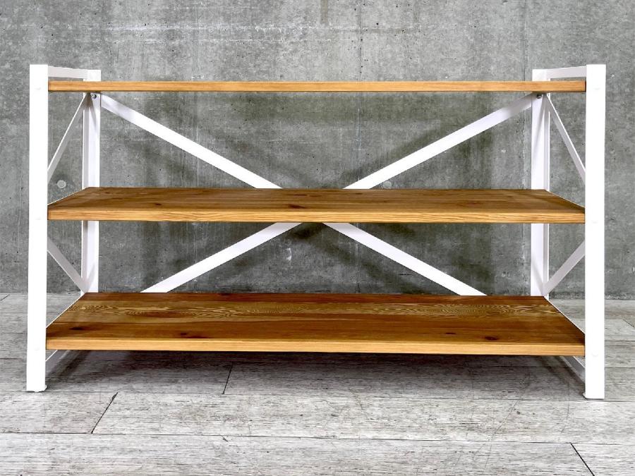 筋かい構造で安定感があり、重量のある書籍やガラス製品を置いても安心。キッチン、リビングの収納から店舗での什器としても使いやすいデザインです。