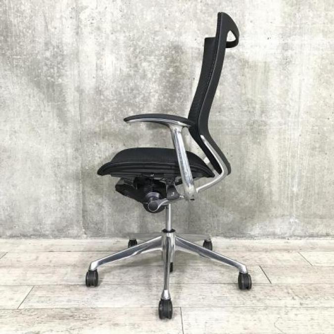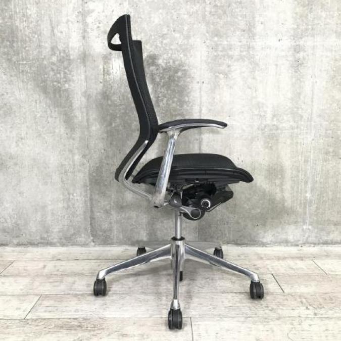 【オフィスの執務室、会議室におすすめ!】■オカムラ(okamura)製 バロン(Baron)チェア 肘付き ハイバック ■背・座面メッシュ ■可動肘 ■ヘッドレスト付き ■ブラック【硬めの座面が大人気!国産メッシュチェアの代表格!】