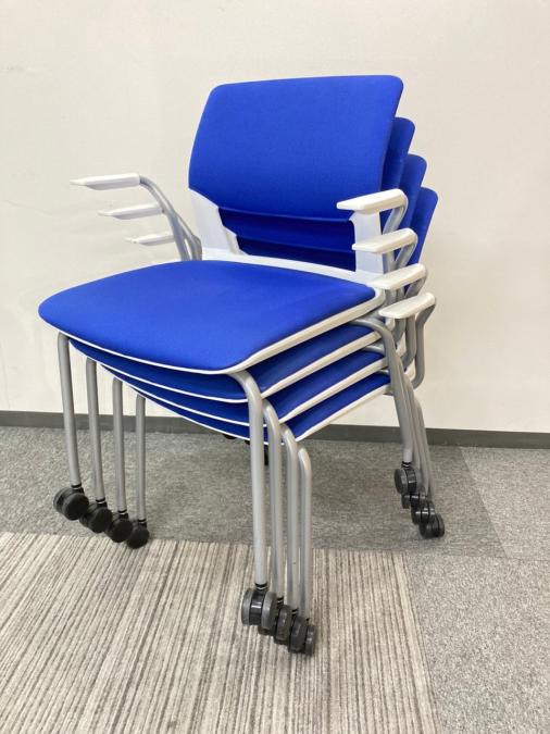 【在庫入替セール品】【11脚入荷】 コクヨ KOKUYO スタッキングチェア 肘置き付き ブルー 会議 ミーティング- 東大阪店