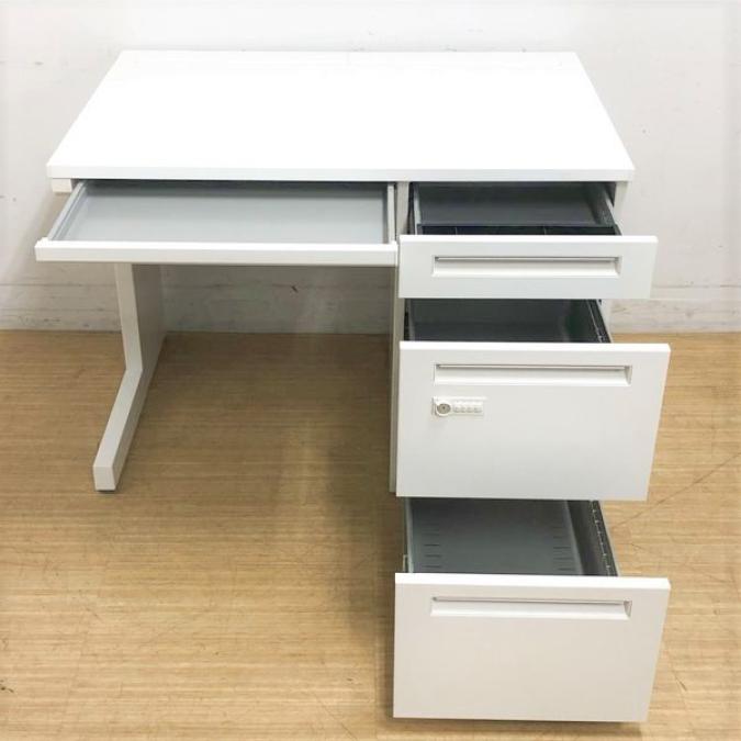 【内田洋行製の定番デスクが入荷致しました!】中古 片袖 ホワイト W1000 H720 増員 入れ替え シリンダー錠