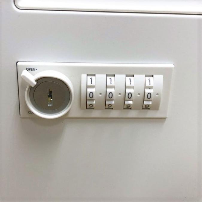 袖引き出しの施錠はダイヤル錠で鍵要らず