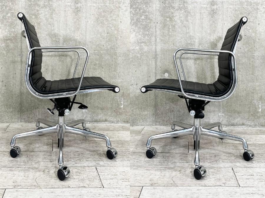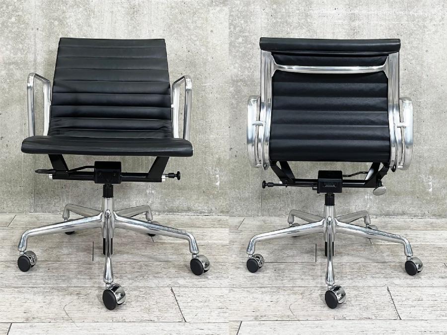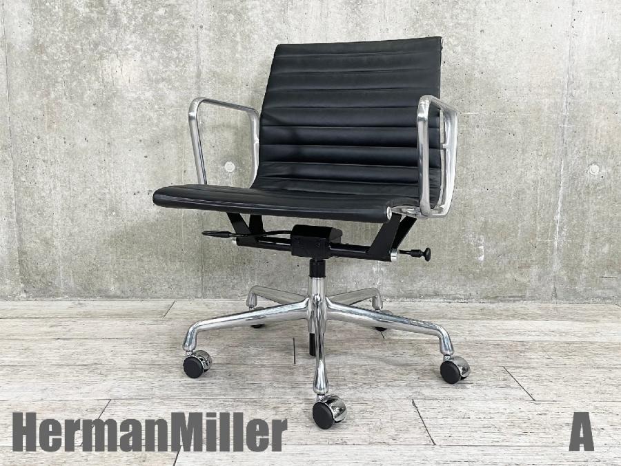 A)HermanMiller/ハーマンミラー イームズ アルミナムチェア ガス圧昇降 ローバック ブラック 本革在庫がある店舗一覧