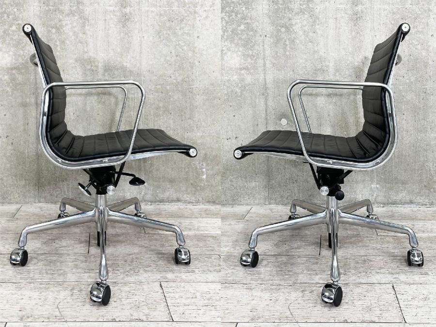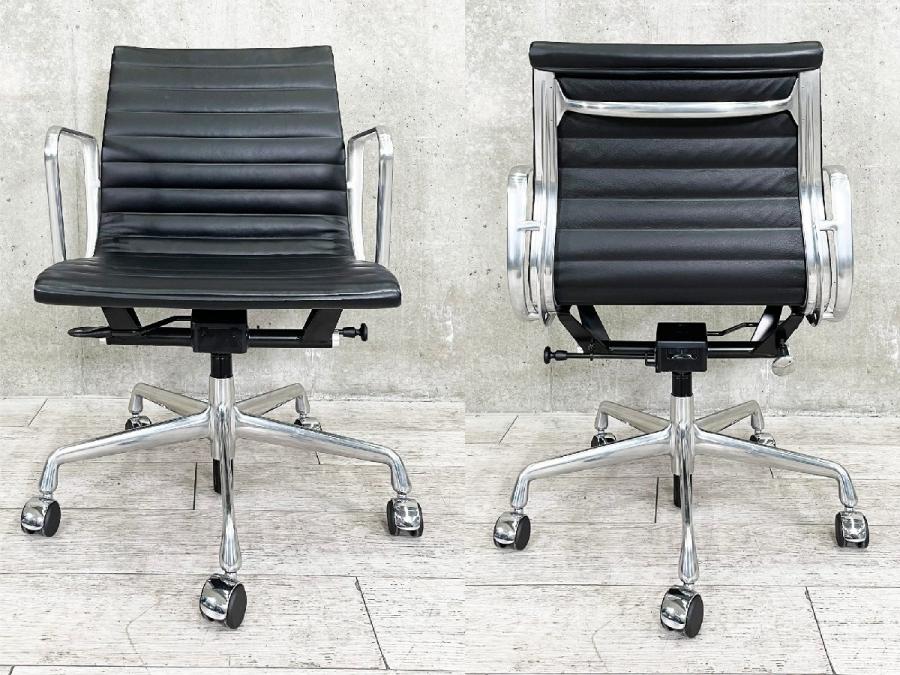 C)HermanMiller/ハーマンミラー イームズ アルミナムチェア ガス圧昇降 ローバック ブラック 本革在庫がある店舗一覧