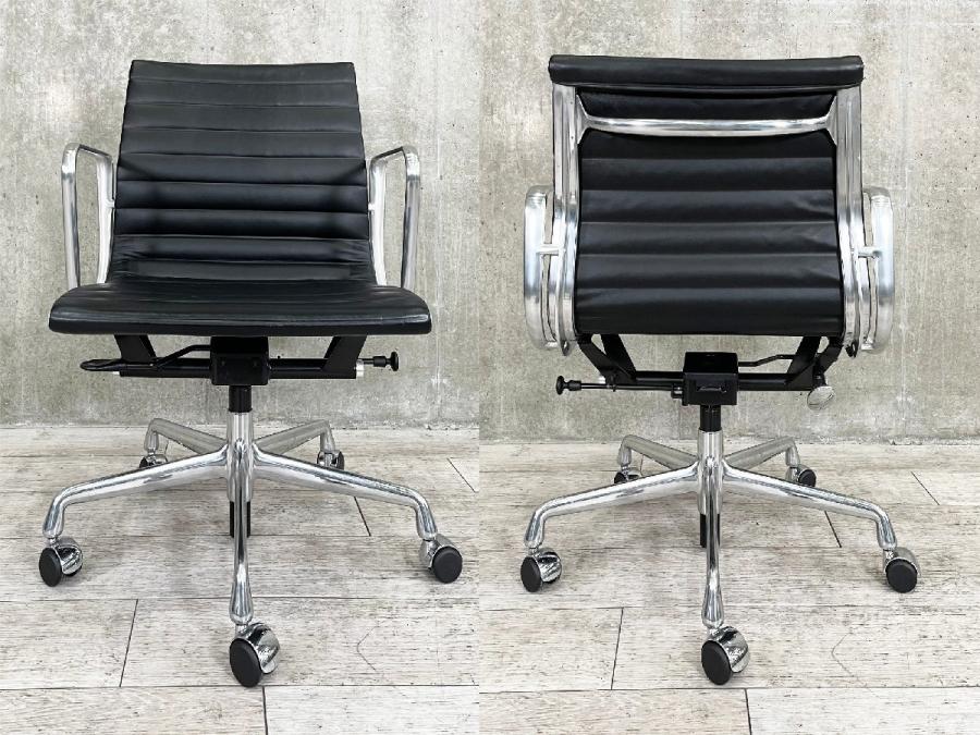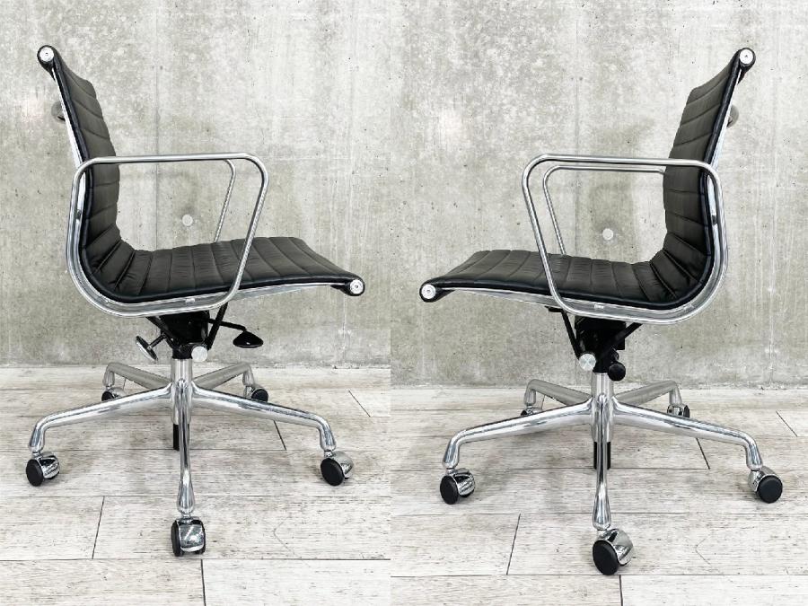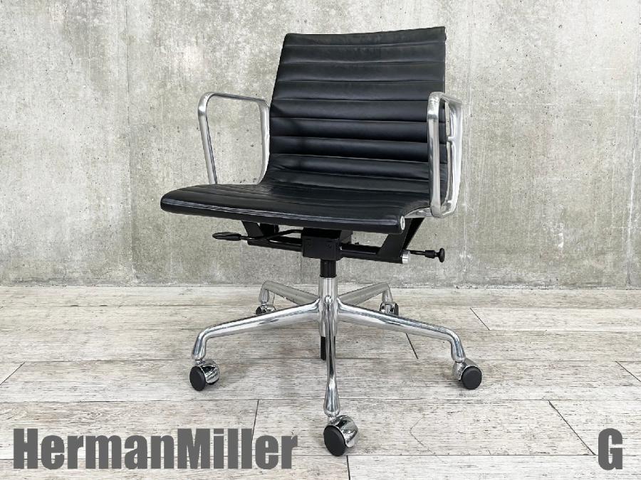 G)HermanMiller/ハーマンミラー イームズ アルミナムチェア ガス圧昇降 ローバック ブラック 本革在庫がある店舗一覧