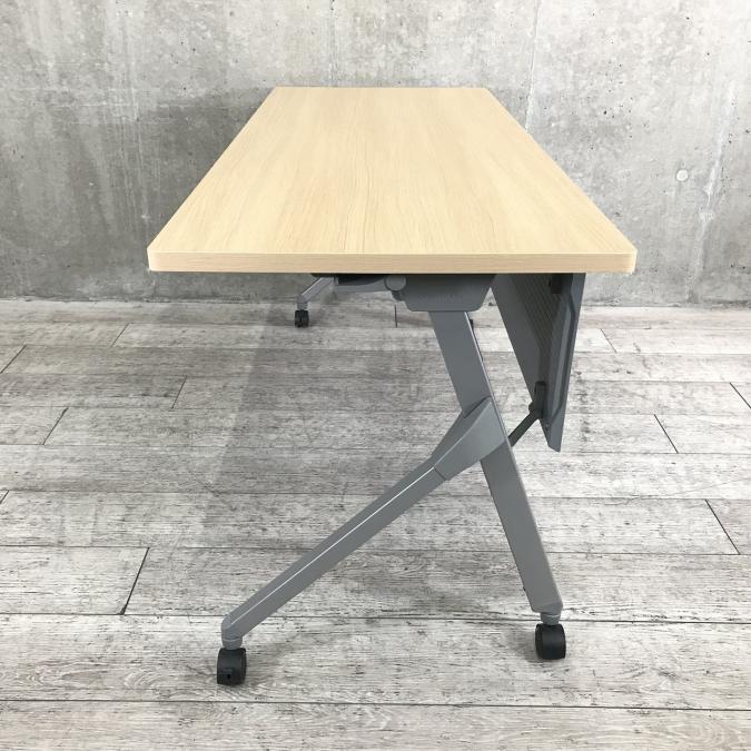 【在庫入替セール品】オカムラ製の定番スタックテーブル!天板跳ね上げ式でキャスター付きのため収納にも便利! ■オカムラ/フラプター/ナチュラル- 立川・八王子店