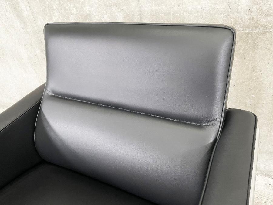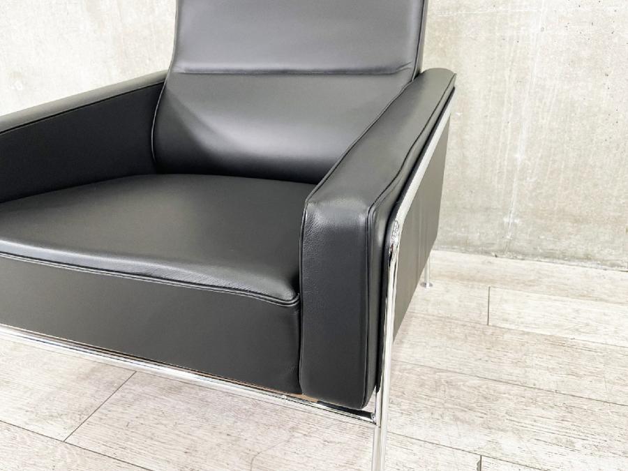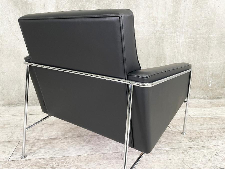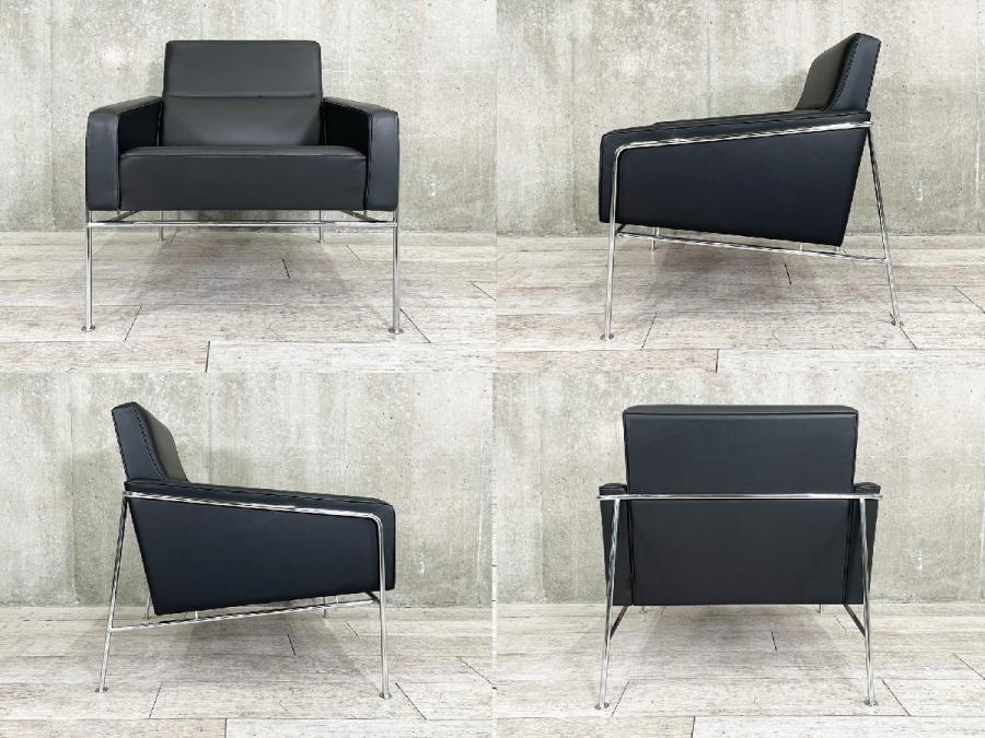 チェアと2人掛けおよび3人掛けのソファで構成される3300シリーズは、同じくSASロイヤルホテルのためにデザインされたエッグチェアやスワンチェアの有機的なフォルムとエレガントなコントラストを成しています。 フレームはクローム仕上げのスチールパイプ製。クッションは木製のフレームに常温硬化フォームを取り付けています。