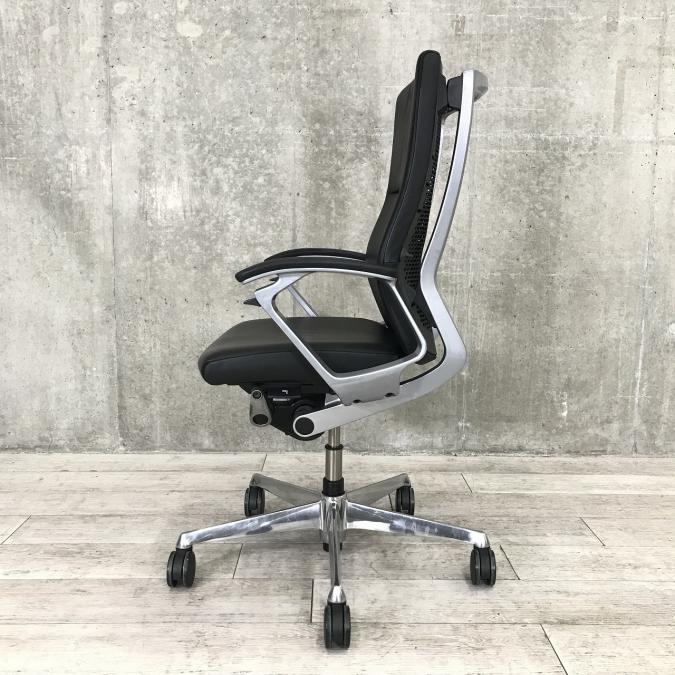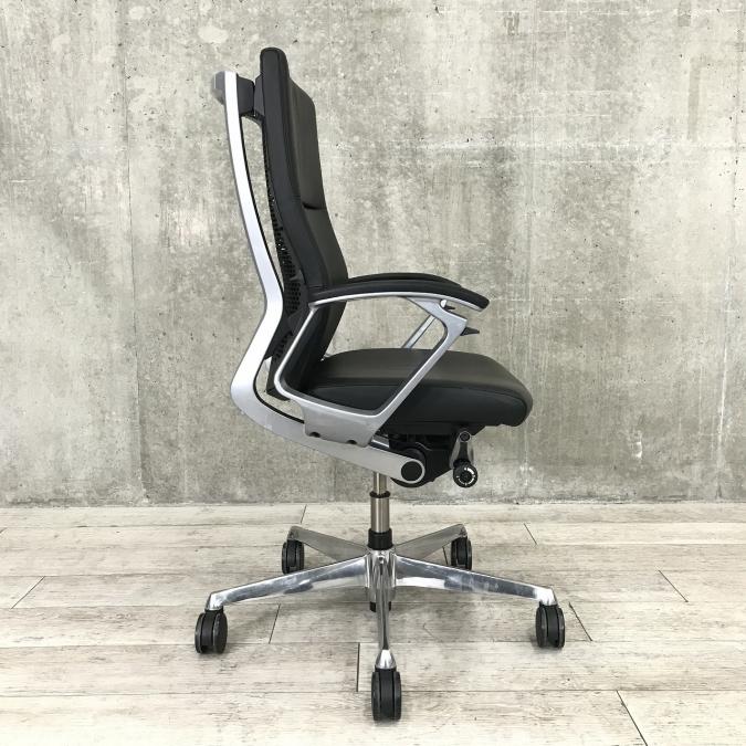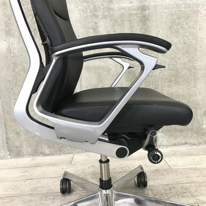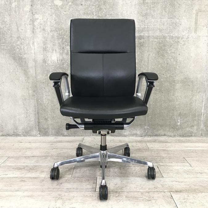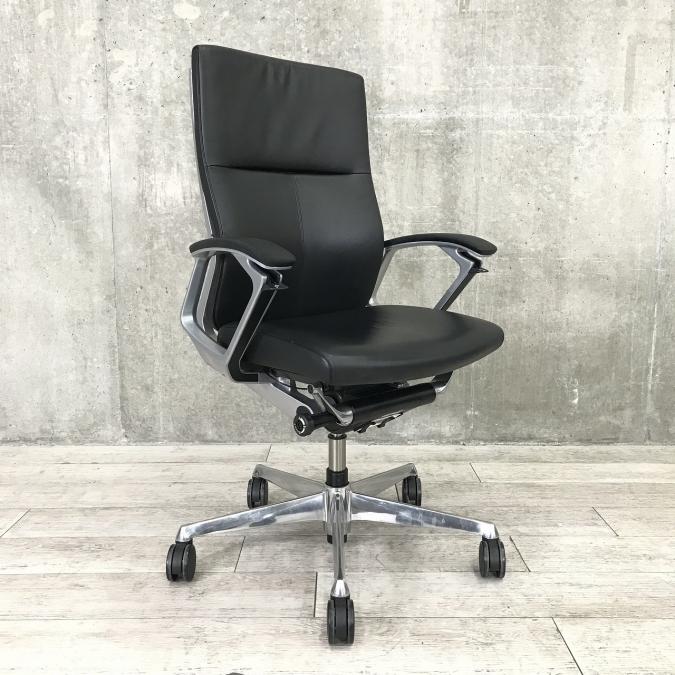 【滑らかで高級感あふれる座り心地が大人気!!】■オカムラ(okamura)製 デュークチェア(DUKE) ハイバック肘付き ■レザー張地 ■固定肘 ■ブラック【弊社使用欄:A01037767】