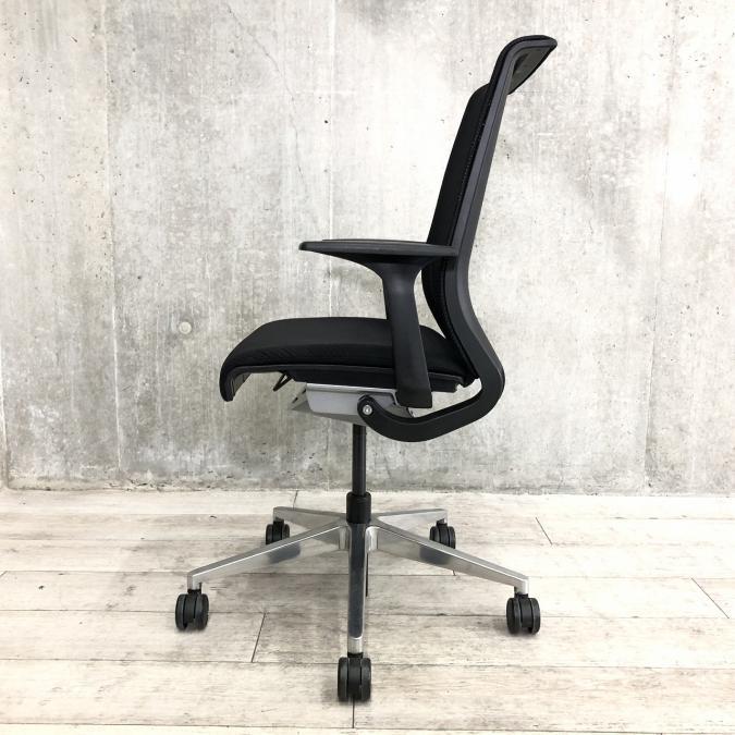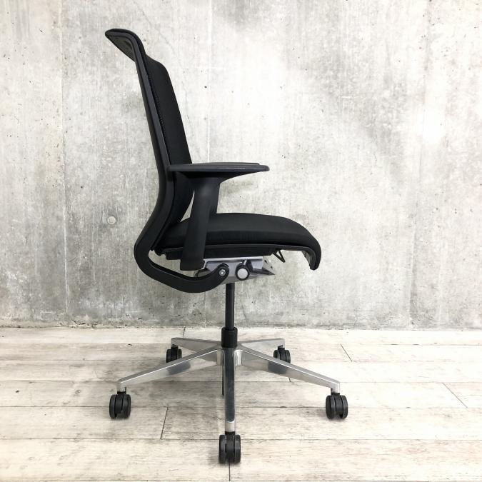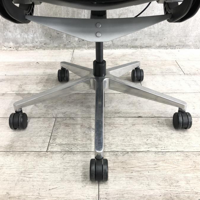 快適な座り心地に不可欠な調節機能である、上下昇降、座面の奥行き調整、リクライニングなどを備えており、操作もわかりやすく好評です。 特に、座面の奥行きは、座面下の左右に通った細いバーで調整でき、座ったままで軽やかに滑るように調整が可能です。 価格面では、新品では高めですが、中古は流通も多く、定価の3割前後の価格で高級チェアの座り心地を手に入れることができます!