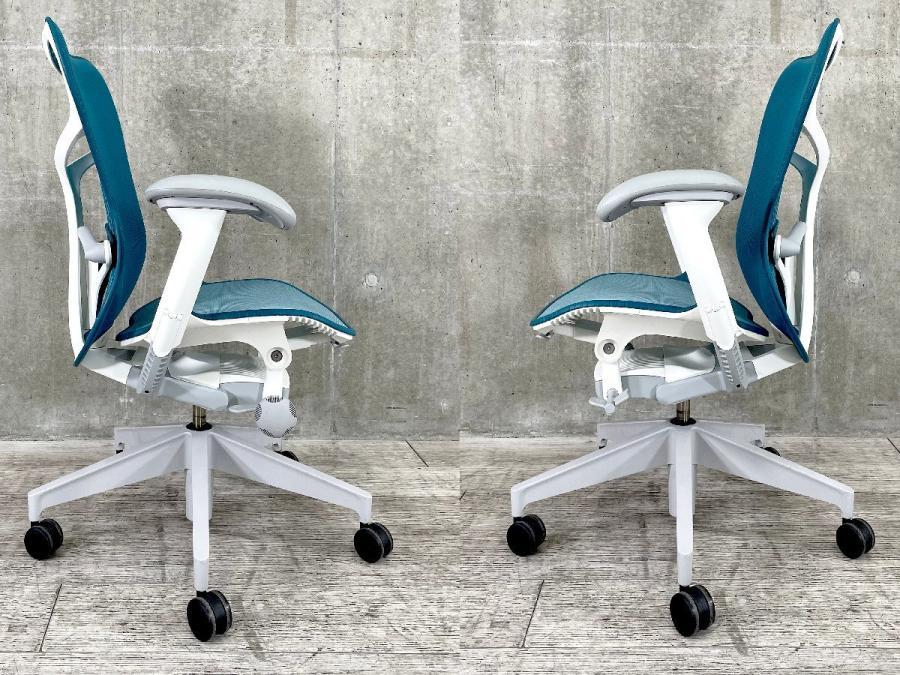 ■人気海外メーカーのオフィスチェア! ■座面も背面もメッシュで通気性が良い! ■前傾チルト機能あり ■ハーマンミラー(HermanMiller) ミラ2(Mirra2) チェア ■色:ダークターコイズxホワイトフレーム- 在庫数
