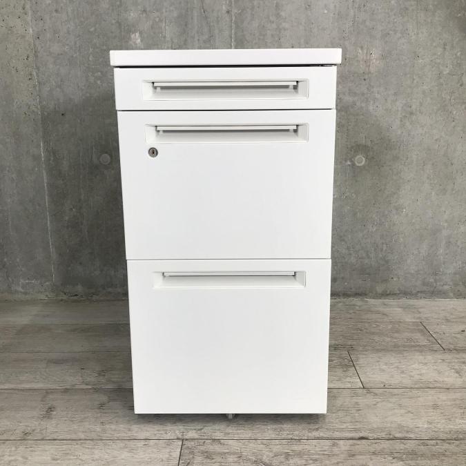 【収納と作業スペースを同時に確保!人気シリーズの脇机!】■オカムラ(okamura)製 アドバンス (ADVANCE) 3段脇机 高さ 720mm ■シリンダー錠 ■ホワイト 【弊社使用欄:A01041635】【KN】