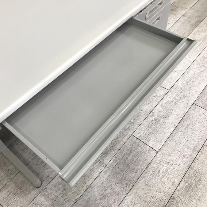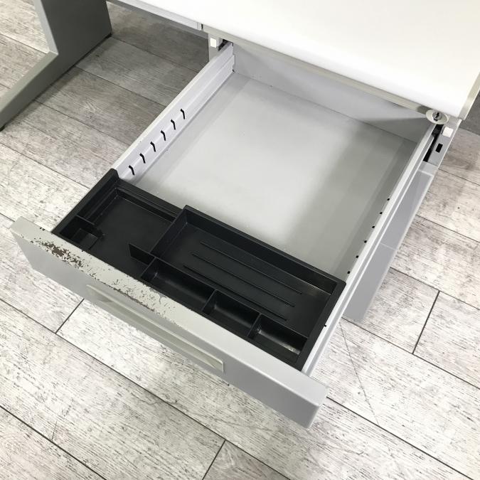 【スタンダードサイズのW1200が揃います!】片袖机 内田 JUST ニューグレー 【天板フチ・引き出し・配線箇所に塗装ハゲ・サビありのためお値打ち価格!】- 足立・葛飾店